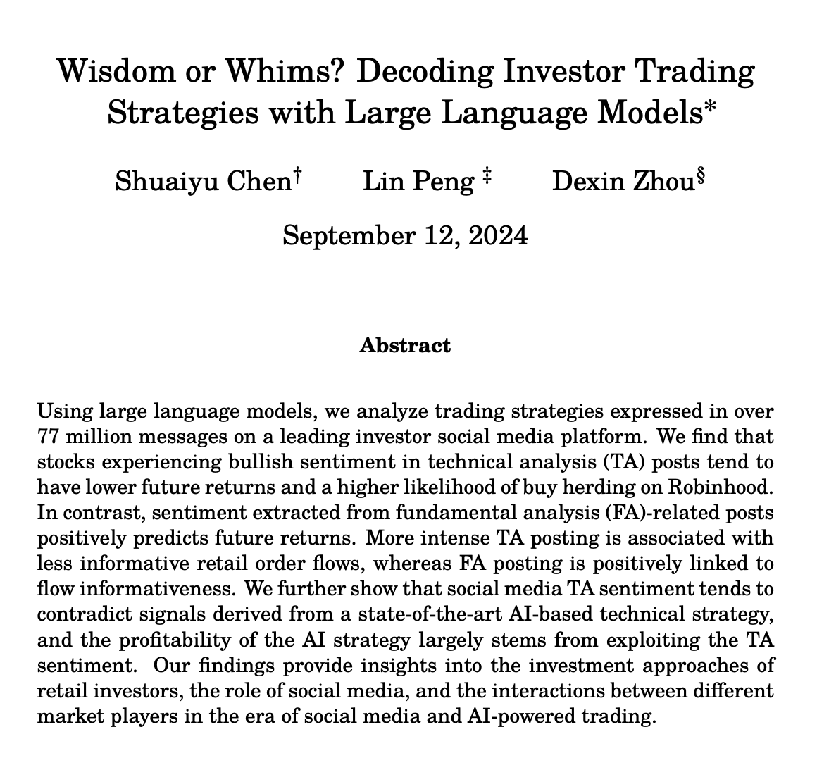 Researchers from Purdue University and Baruch College analyzed 77 million StockTwits messages with Large Language Models (LLMs) — a type of analysis that was previously impossible due to the vast amount of unstructured data.