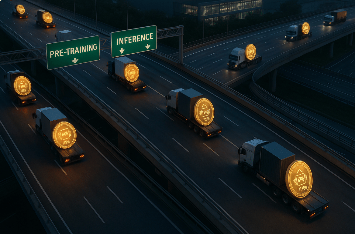 Compute is akin to a freight carrier moving digital tokens. Made w/ ChatGPT