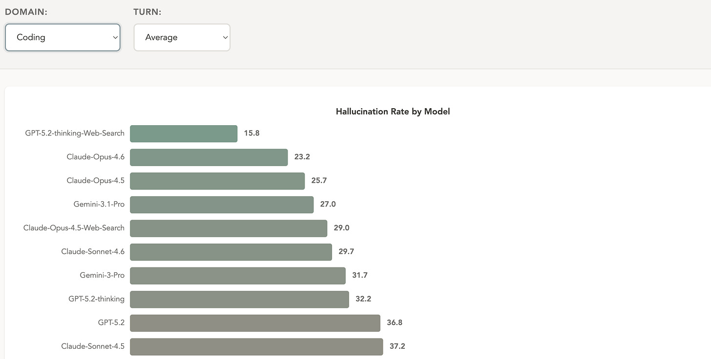 Even coding, the most reliable domain tested, still shows hallucination rates around 15%. Yet this hasn’t stopped vibecoding, or writing code with natural language, from taking off.